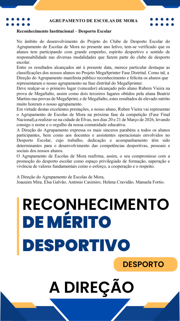 O Agrupamento de Escolas de Mora foi constituído por despacho de oito de junho de 1989 de sua Excelência o Secretário de Estado da Administração Educativa e serve a população do Concelho de Mora.