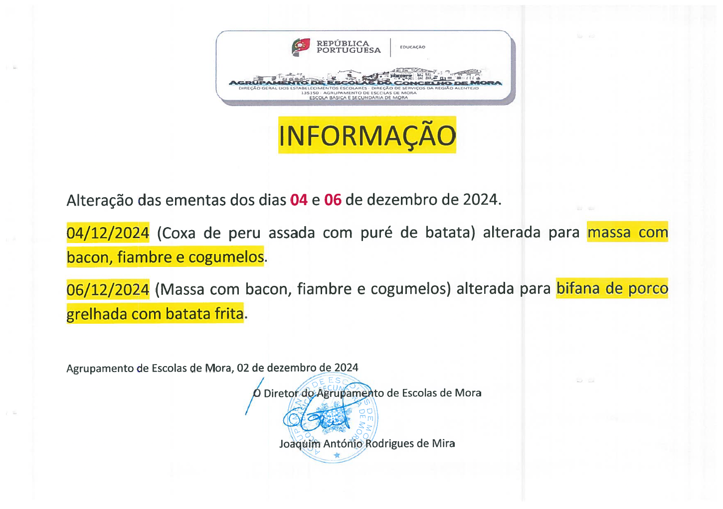 Alteração de ementa