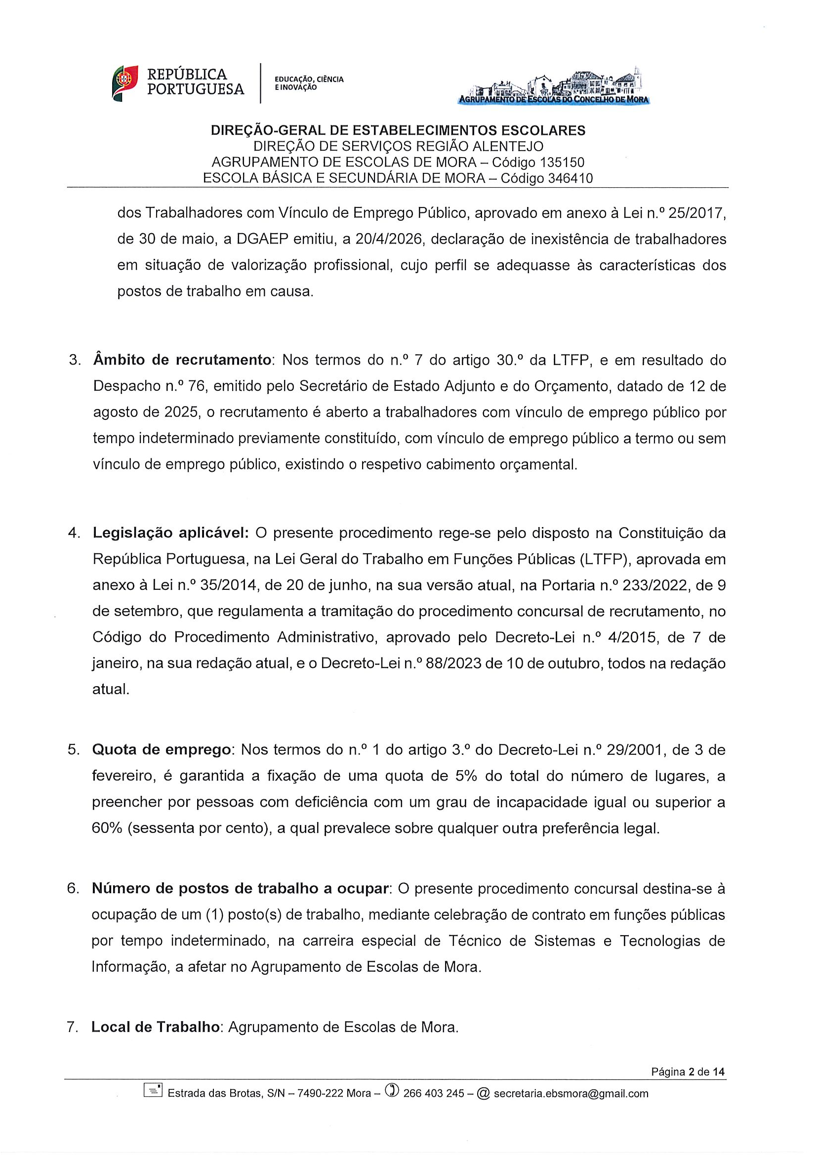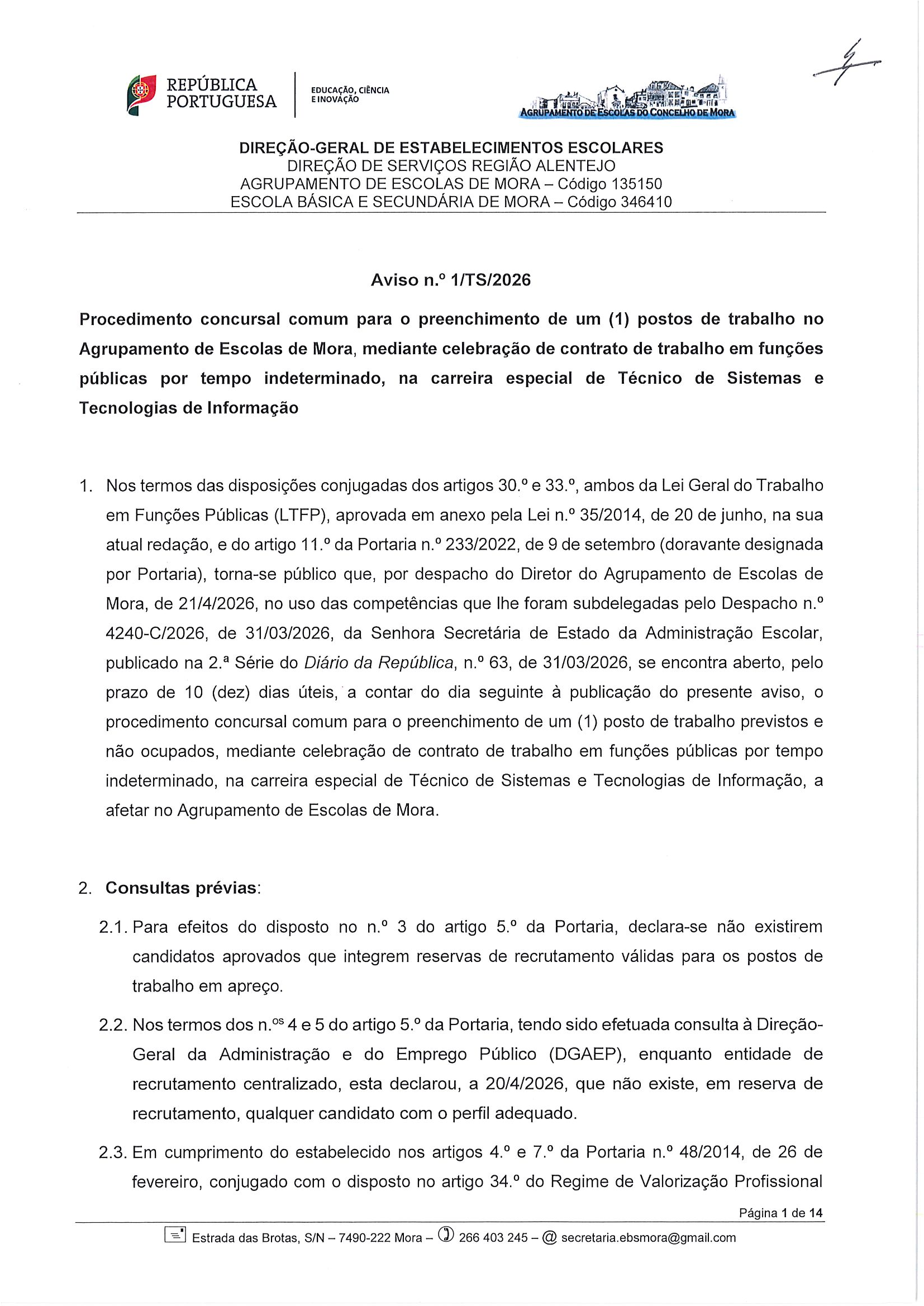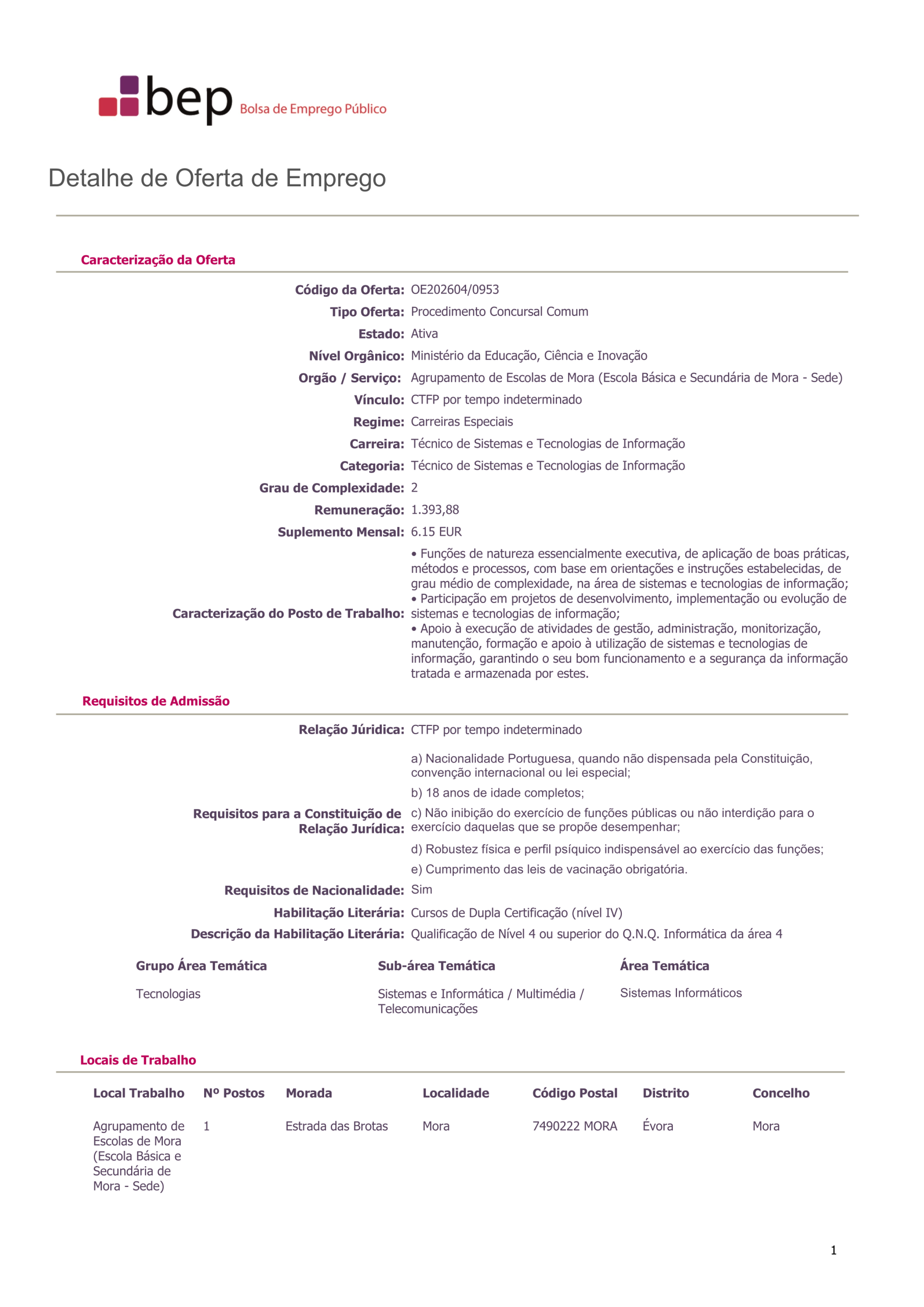 Concurso para Técnico de Sistemas e Tecnologias de Informação. Diário da República Aviso BEP…