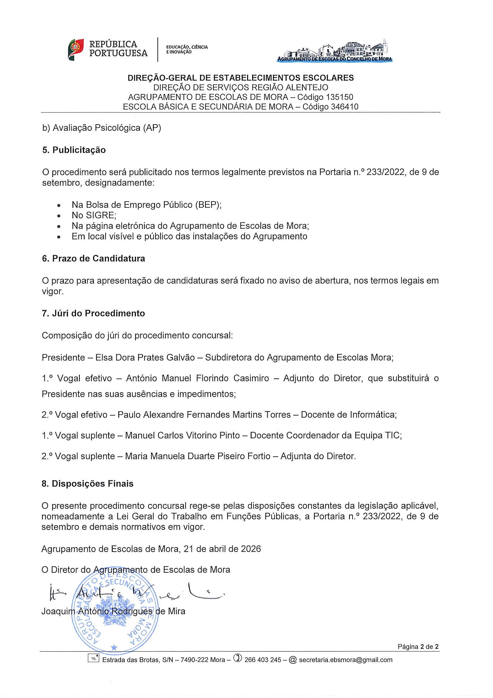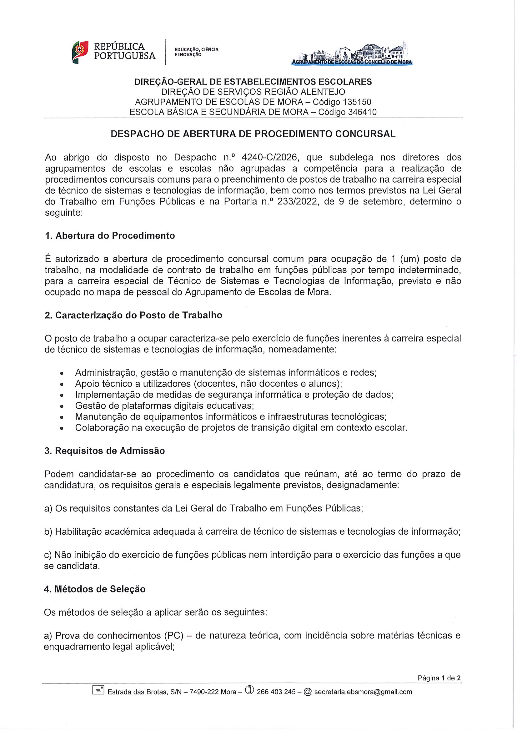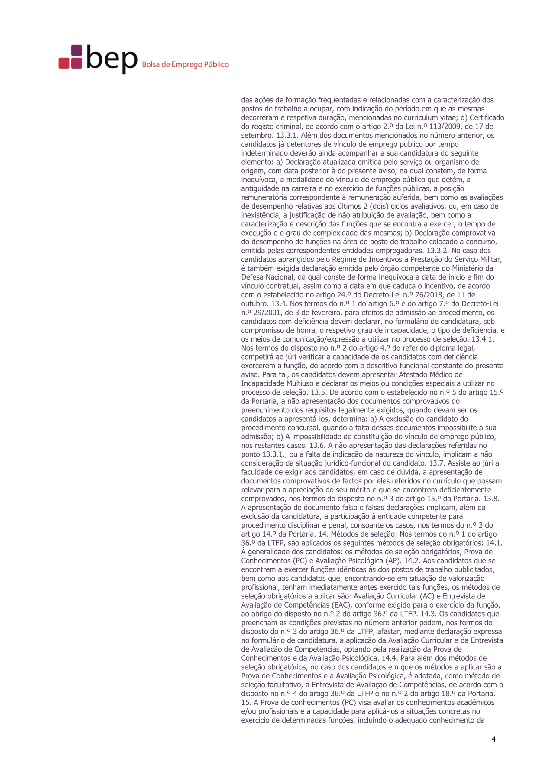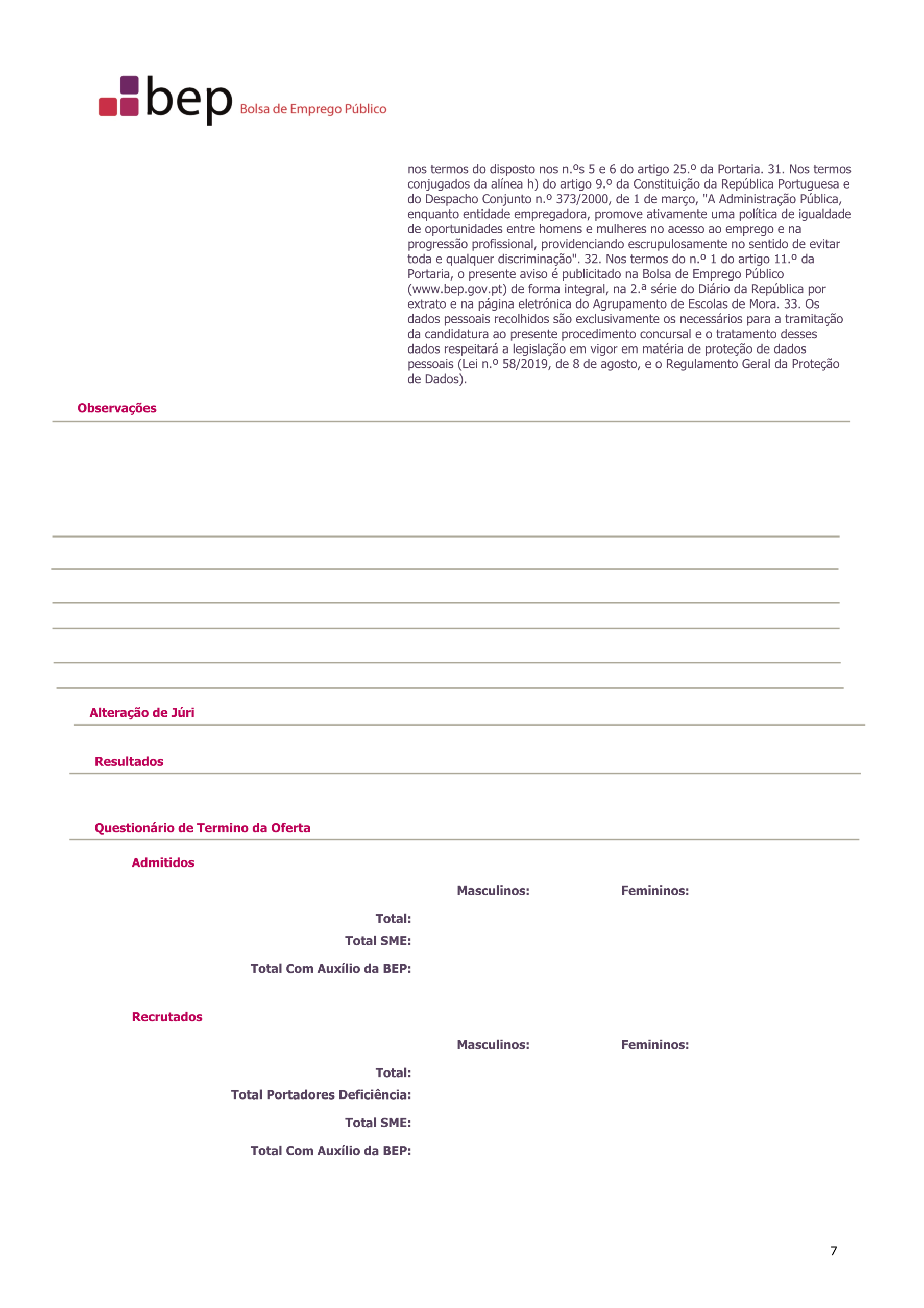 Diário da República Aviso BEP Aviso de Concurso DESPACHO DE ABERTURA DE PROCEDIMENTO CONCURSAL |